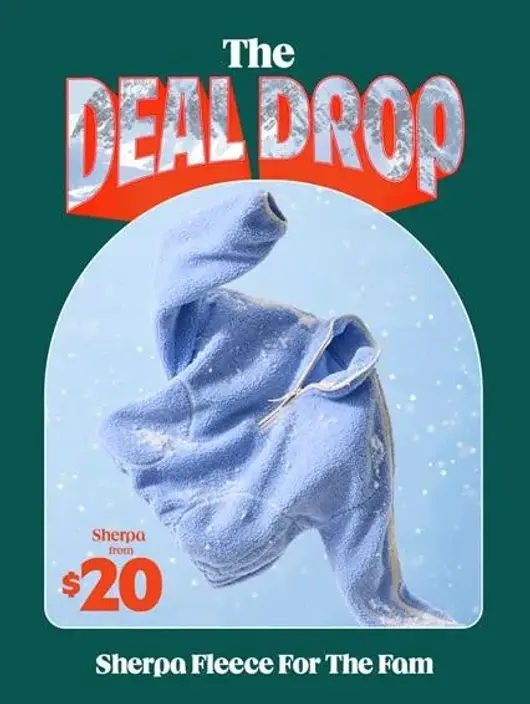 Don't miss The Deal Drop! Shop in store and get select sherpa for adults for only $35, $25 for kids and $20 for toddlers and babies.