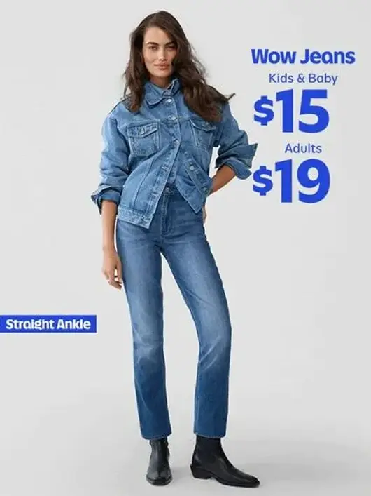 Don't miss out! Shop in store and get select Wow Jeans for adults for only $19 each, and $15 each for kids babies, for a limited time.