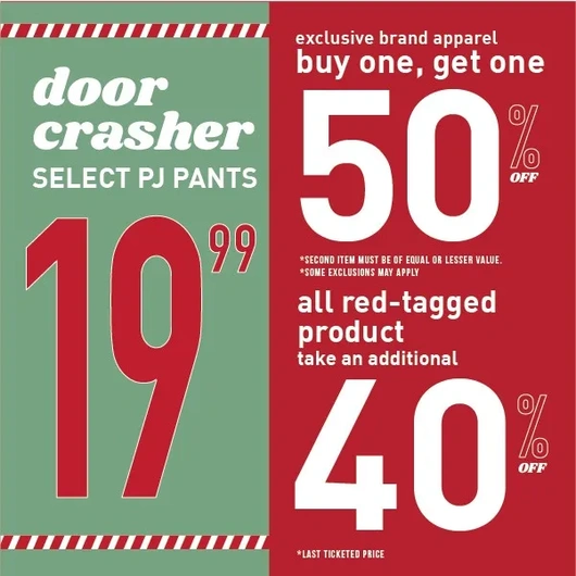 Enjoy Doorcrasher deal and exclusive brand apparel - Buy one, Get one at 50% off offer at Boathouse